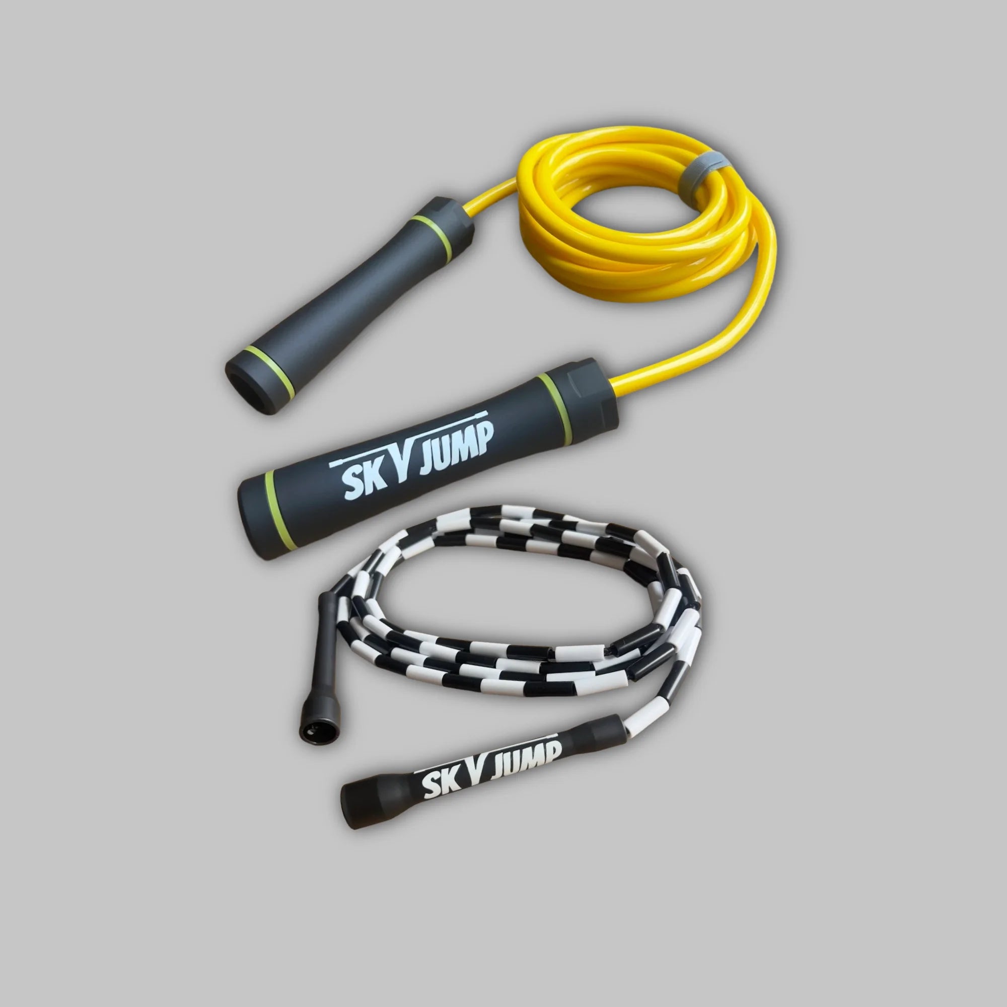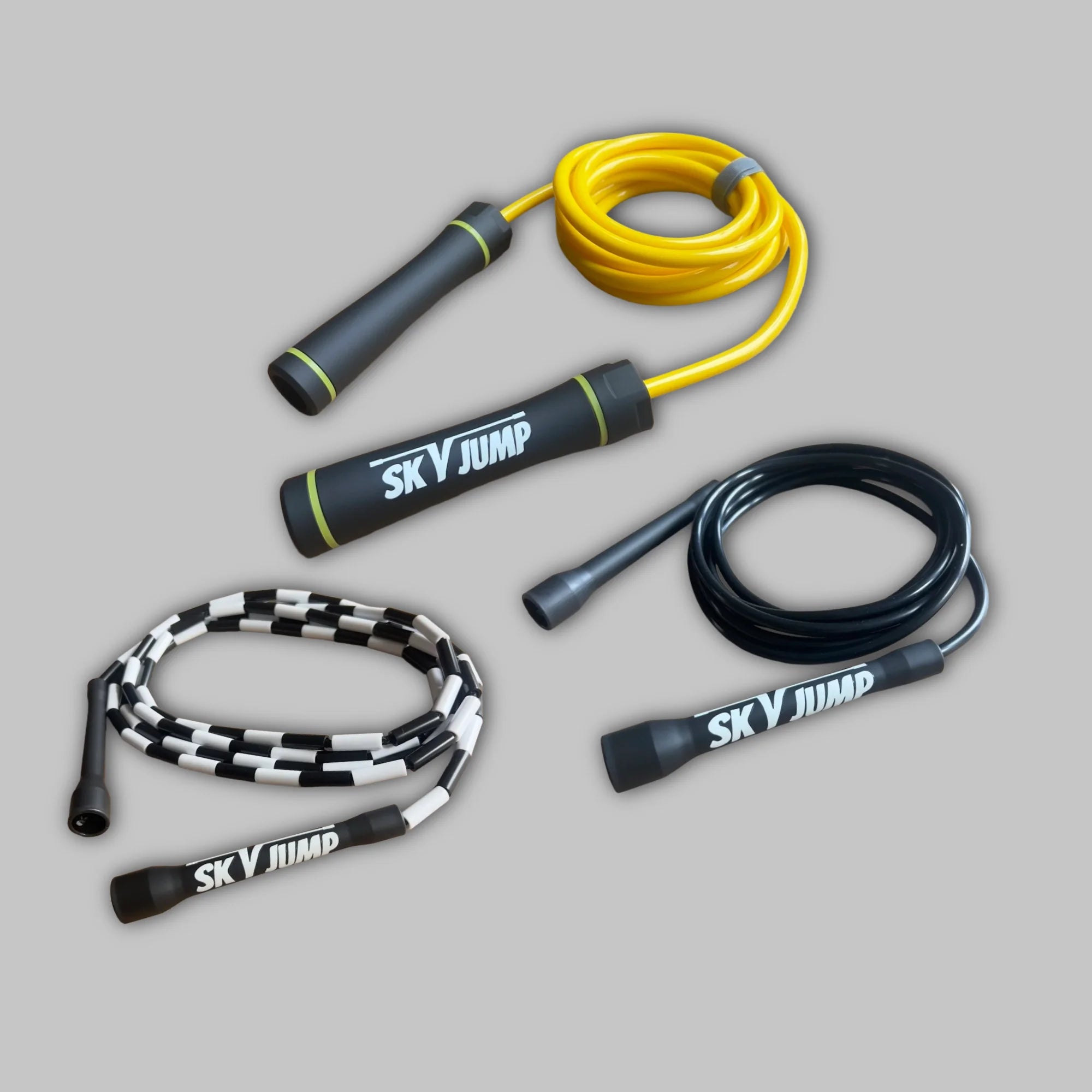SkyJump propose une gamme complète de cordes à sauter professionnelles adaptées à tous les niveaux. Que vous recherchiez une corde à sauter PVC pour travailler la vitesse et le cardio, une corde à sauter perlée pour améliorer votre contrôle technique et progresser en freestyle, ou une corde à sauter lestée pour développer votre puissance et votre endurance musculaire, nos modèles sont conçus pour accompagner votre progression.